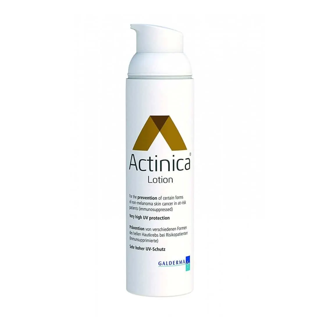 Actinica Lotion est une lotion solaire SPF 50+ spécialement formulée pour prévenir les cancers de la peau non mélanome chez les patients à risque (immunosupprimés).
