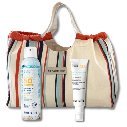 Explorez le pack idéal pour la plage cet été : Radiant Skin & Beach. le Photocorrection [HA 50+] Teinté de Sensilis, un soin SPF50+ anti-rides et hydratant qui unifie votre teint tout en protégeant votre peau. Complétez votre routine plage avec le Sun Secret Dry Touch Body Spray SPF50+, assurant une haute protection solaire optimale grâce à sa texture sèche et transparente, résistante à l’eau et facile à appliquer. En bonus, choisissez votre sac de plage pour ajouter une touche de glamour à vos journées ensoleillées. Profitez d’une peau protégée et rayonnante avec ce pack essentiel pour l’été.